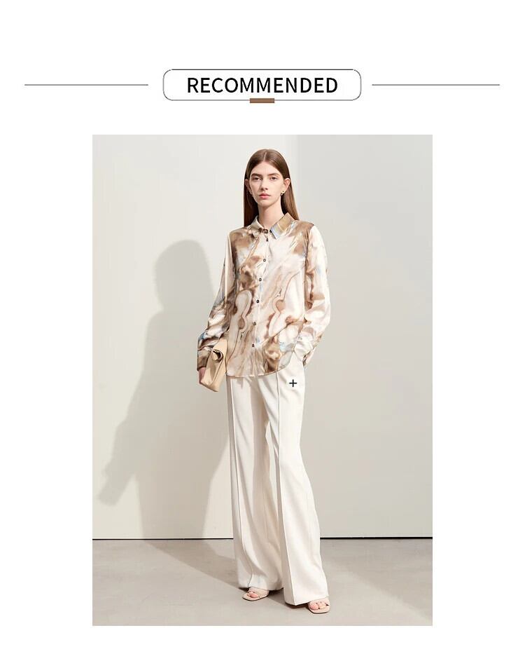 Amii ミニマリズム 2024 夏シャツオフィスレディラペルプリントシェルボタン弾性シャツ & ブラウス 12452145 エラスティック 伸縮 サマー 夏物 シルク 会社 学校 通勤や通学にも | twelve