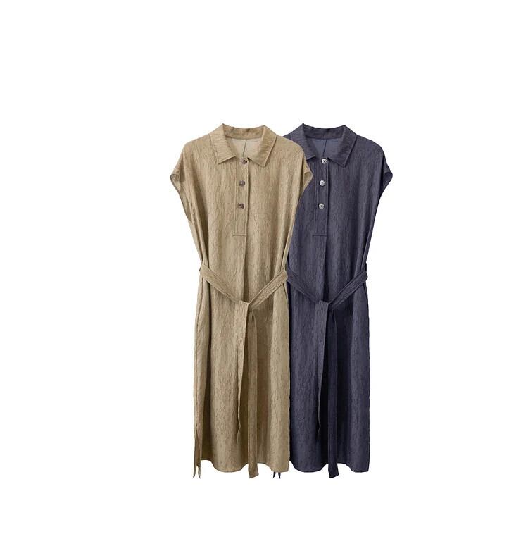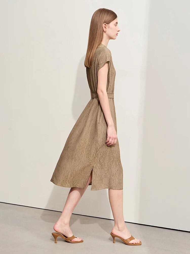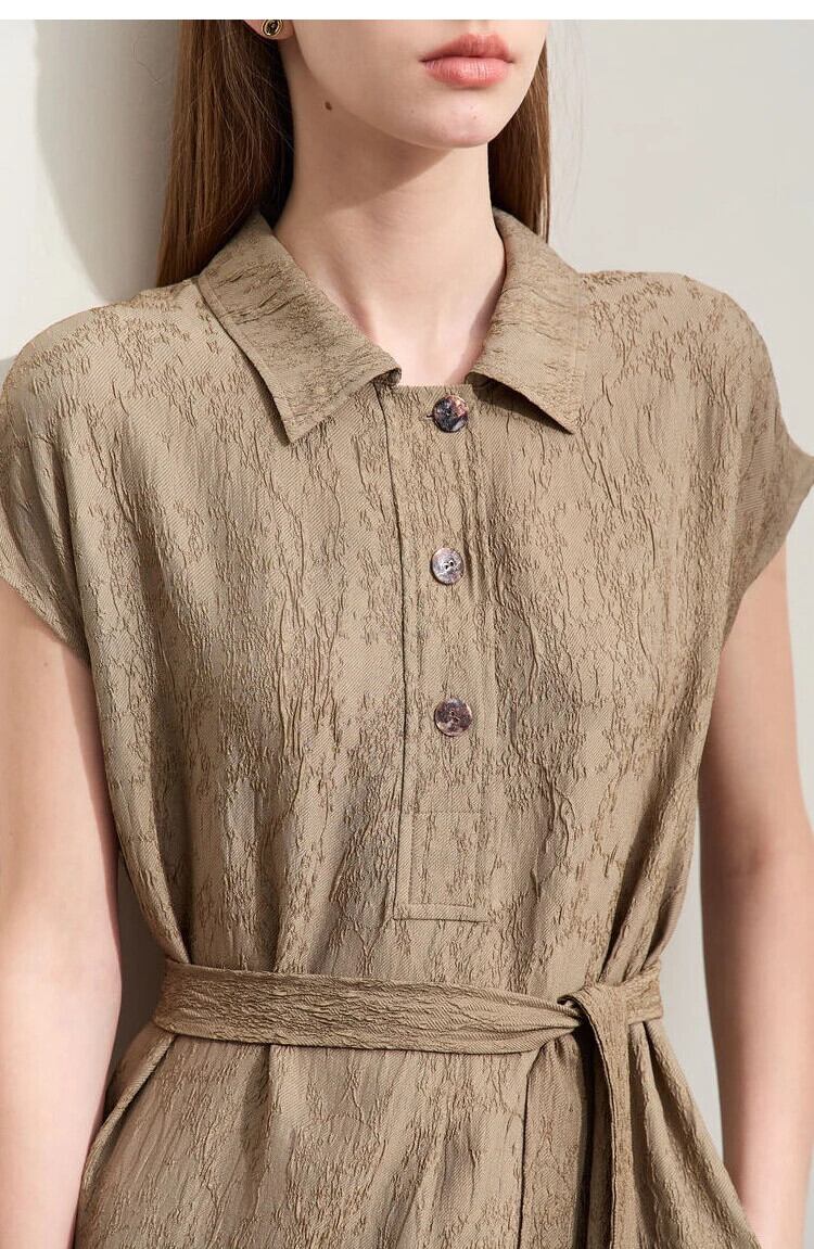 Amii ミニマリズム 2024 オフィスレディドレス夏ジャカードブレンドミディルーズベルトトレンディドレス 12452138 サマー 夏物 ハーネス シルク 会社 学校 通勤や通学にも | twelve